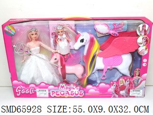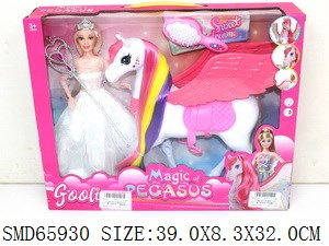 11.5寸婚纱芭比配翅膀飞马+梳子/魔法棒皇冠 带马鞍