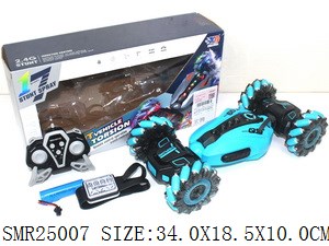 2.4G双遥控扭变侧行特技车喷雾带七彩灯光音乐配USB充电线